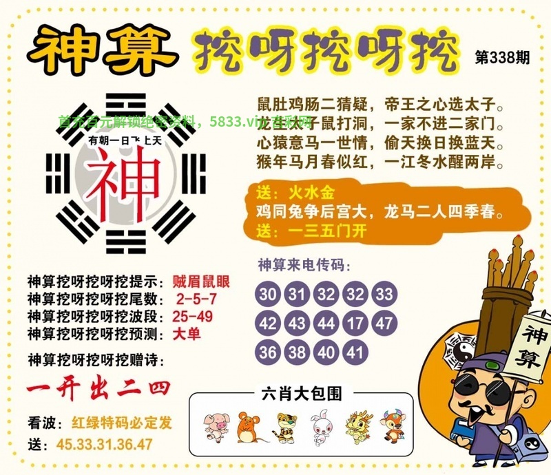 | 333-335期:必开:羊 鼠 猪 鸡 猴 |